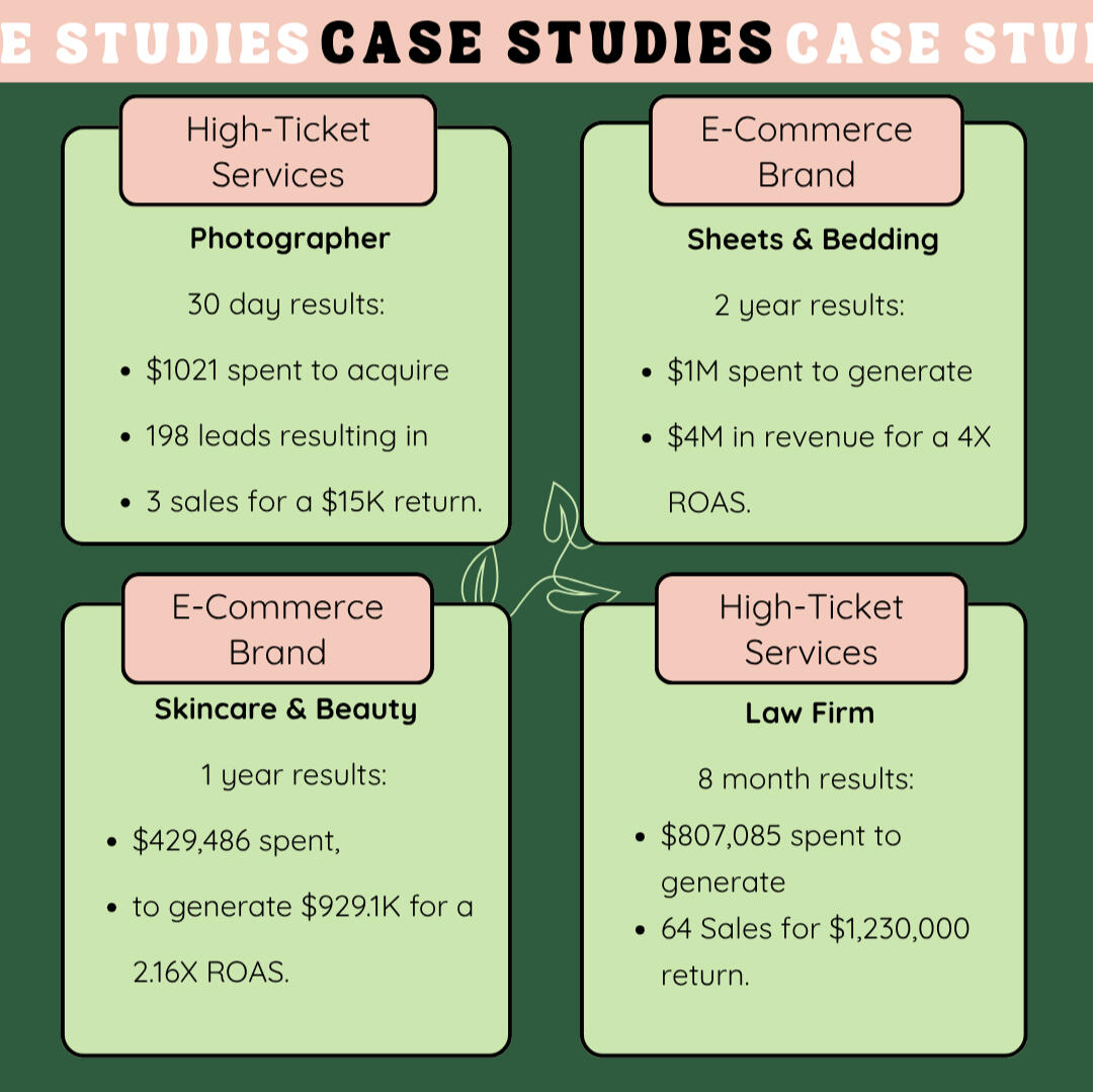 Our love language? Return on ad spend. Backed by 10+ years of marketing expertise, our team has helped scale dozens of businesses, generated millions in revenue, and consistently closes high-quality leads every month.From local businesses, to e-commerce brands, to corporate moguls, we have worked with a dynamic blend of teams, sharpening our edge with every ad dollar spent.When you partner with us, you gain seasoned media buyers and strategic advertisers committed to driving results. Ask us about case studies for your industry!